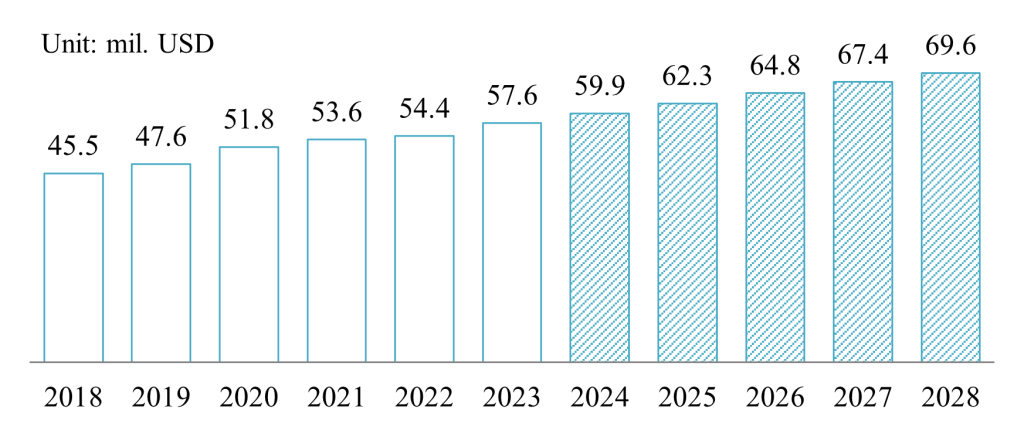 Doanh thu thị trường mỹ phẩm thiên nhiên Việt Nam giai đoạn 2018-2028